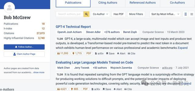 根据Semantic Scholar统计,Bob的总引用高达27K,在强化学习、语言模型上多有高引用文章。